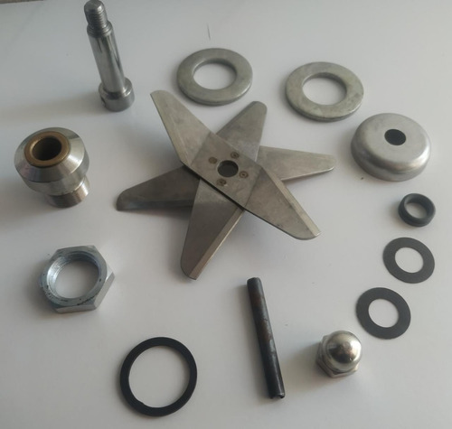 Conjunto de Eixo, Hélice, Anel V Ring, Arruela de Fibra, mancal com Bucha e Pino para os liquidificadores Skymsen (igual foto)